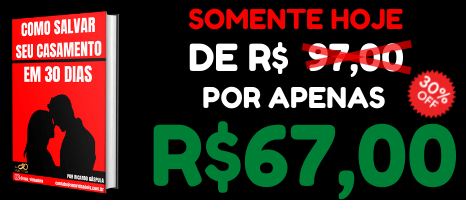 Comece AGORA o método “Como Salvar Seu Casamento em 30 Dias”, use todo o material, e caso você não goste ou acredite que ele não vai funcionar com você (o que eu acho impossível), eu vou devolver 100% do seu dinheiro sem questionamentos.